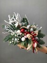 - Zimnyaya kompozitciya s aromatnim nobilisom i snezhnimi vetkami v korzinke