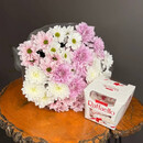 - Nabor buket iz 9 kustovih hrizantem miks + korobka rafaello