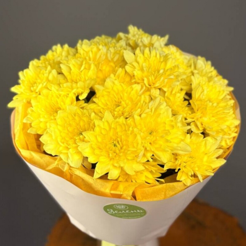 Buket iz zheltih kustovih hrizantem 5sht