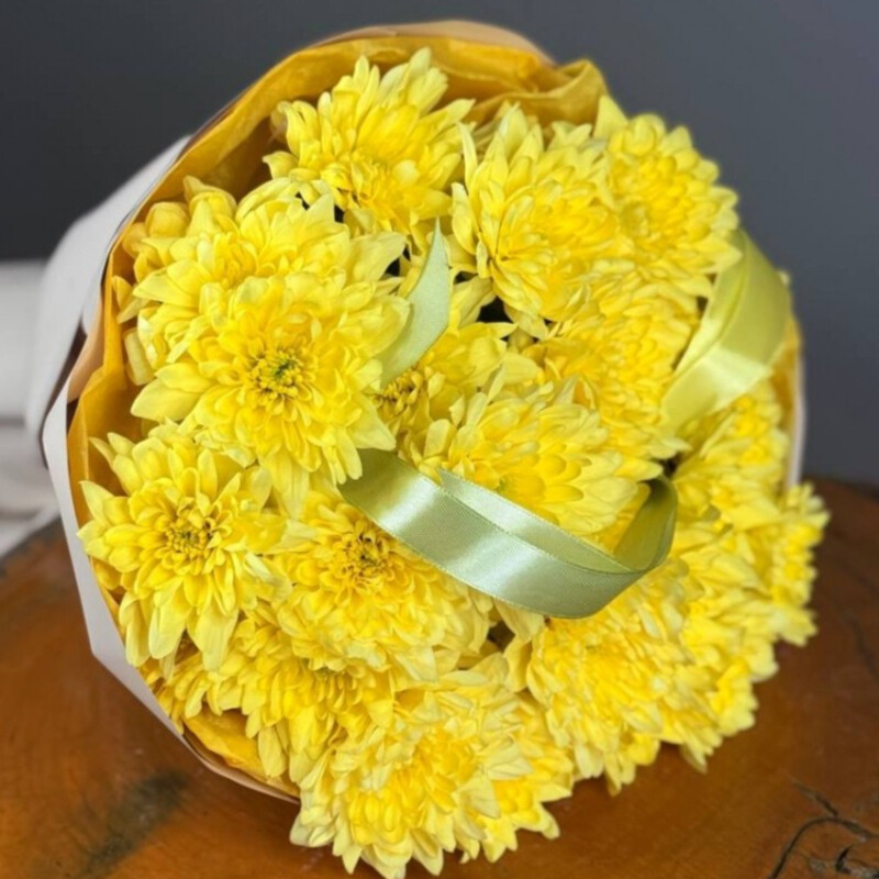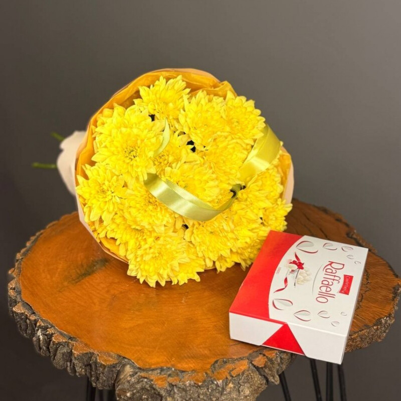 - Nabor buket iz zheltih hrizantem 5sht + korobka rafaello
