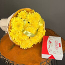 Nabor buket iz zheltih hrizantem 5sht + korobka rafaello