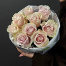 - Mono buket iz nezhno-rozovih roz 9 sht v krugloj upakovke