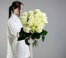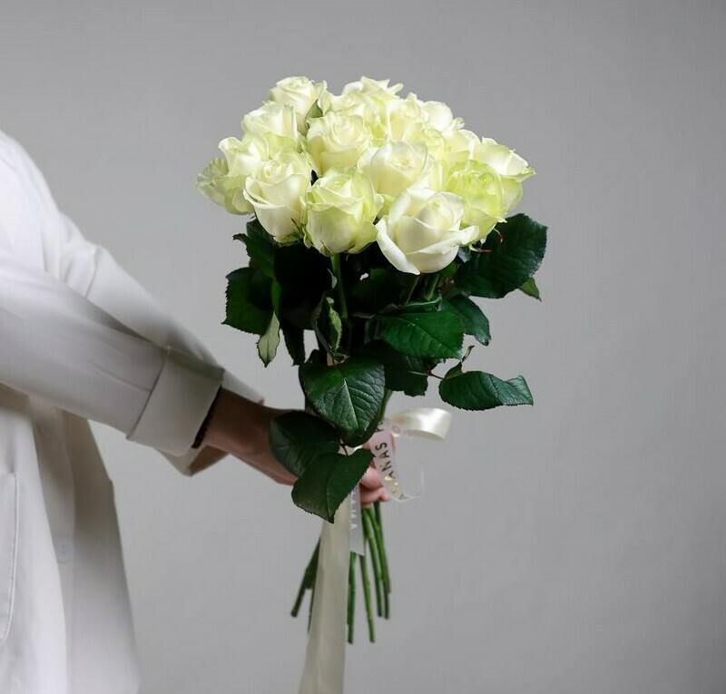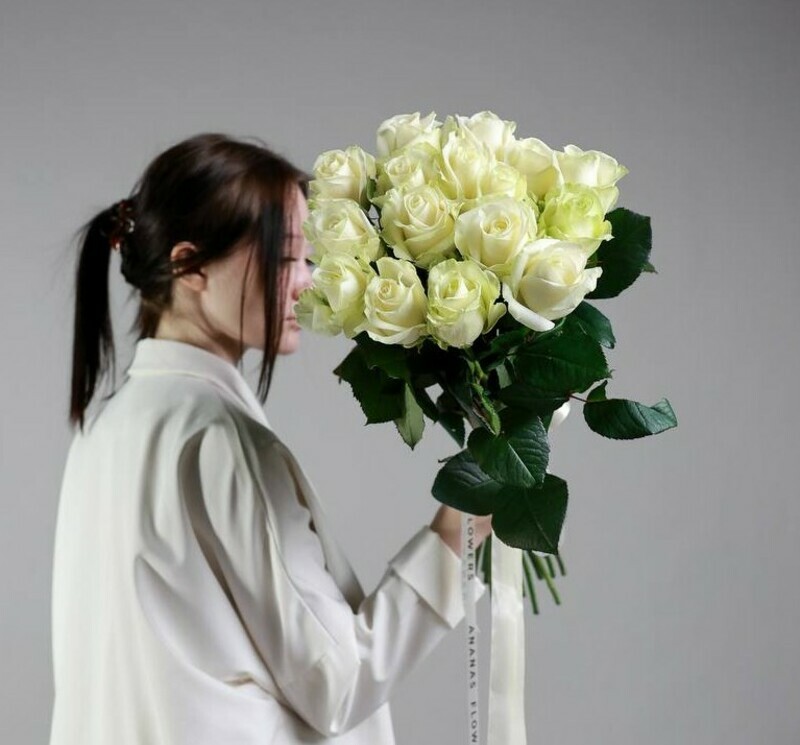 - Monobuket iz 15 belih rossijskih roz pod lentu