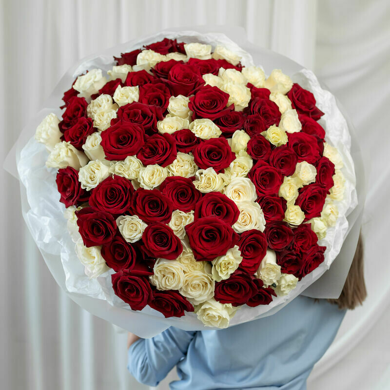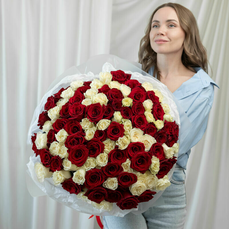 Rozi krasno-belie Ekvador 101sht (60sm)