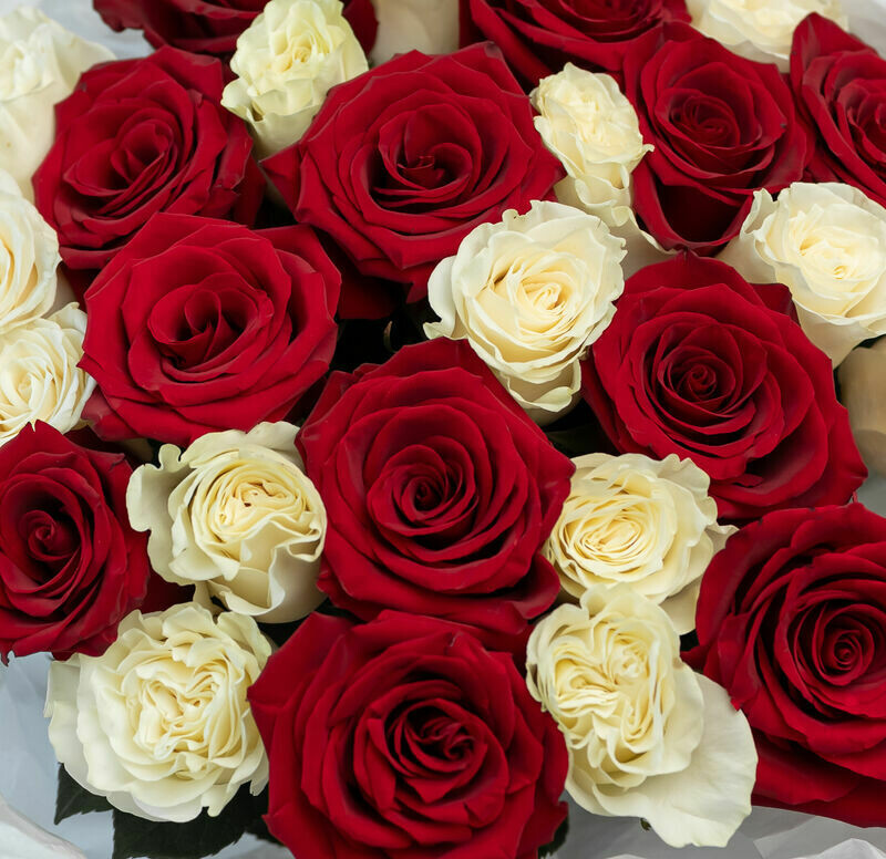 Rozi krasno-belie Ekvador 25 sht (60sm)