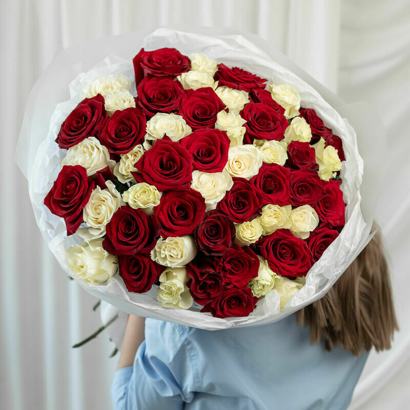 Rozi krasno-belie Ekvador 51 sht (60sm)