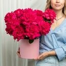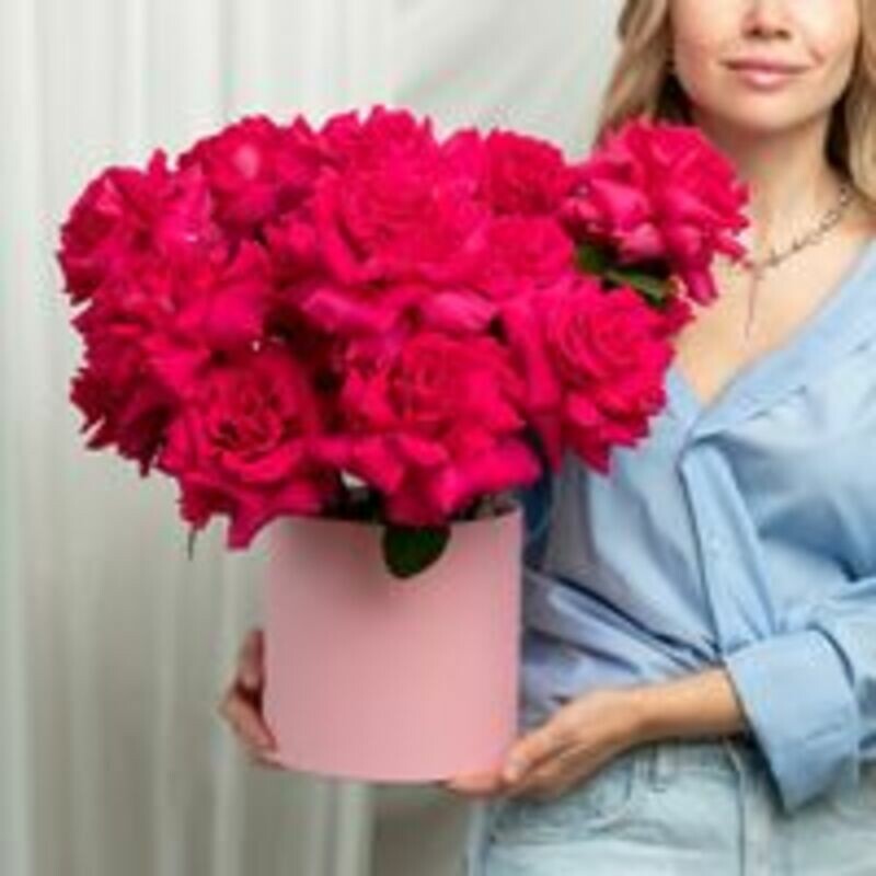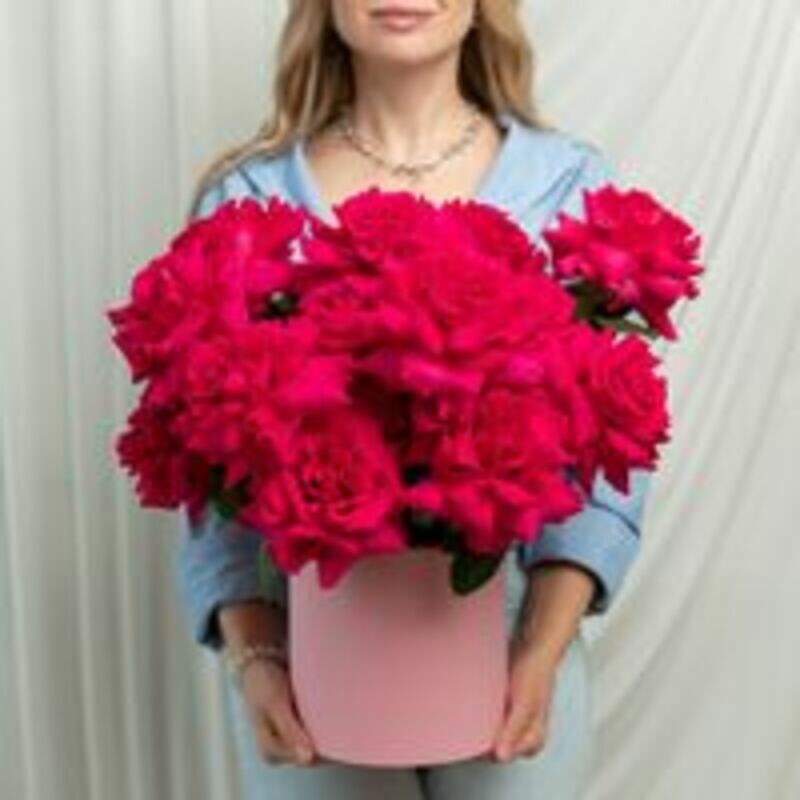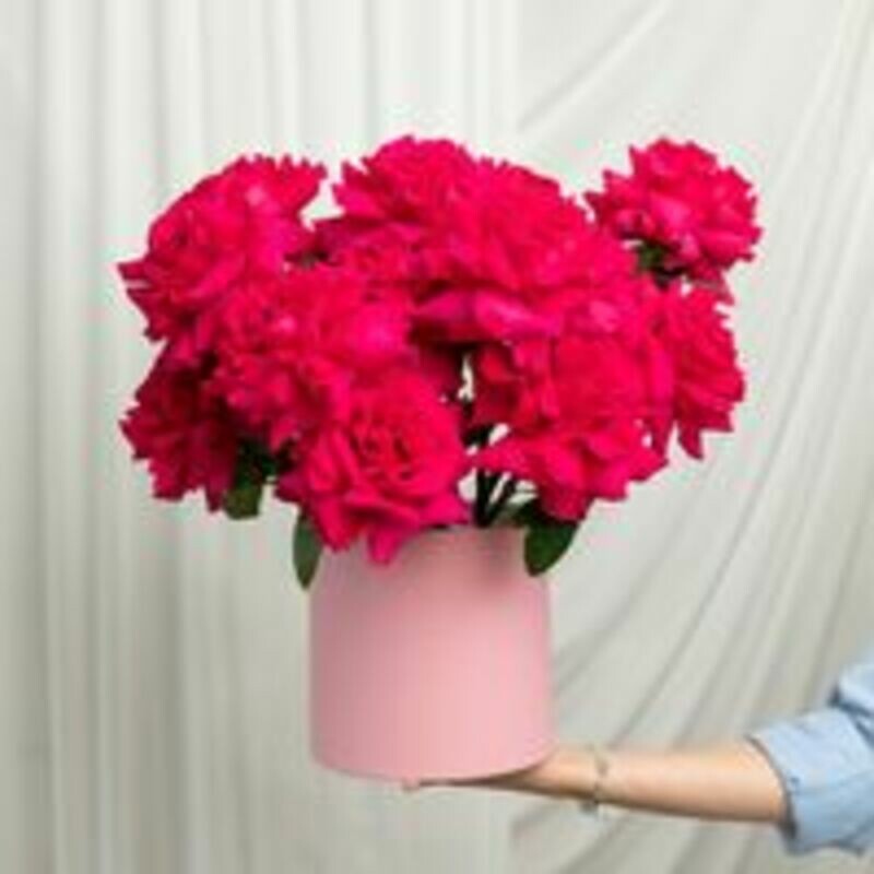 Kompozitciya iz 15 malinovih frantcuzskih roz v korobke