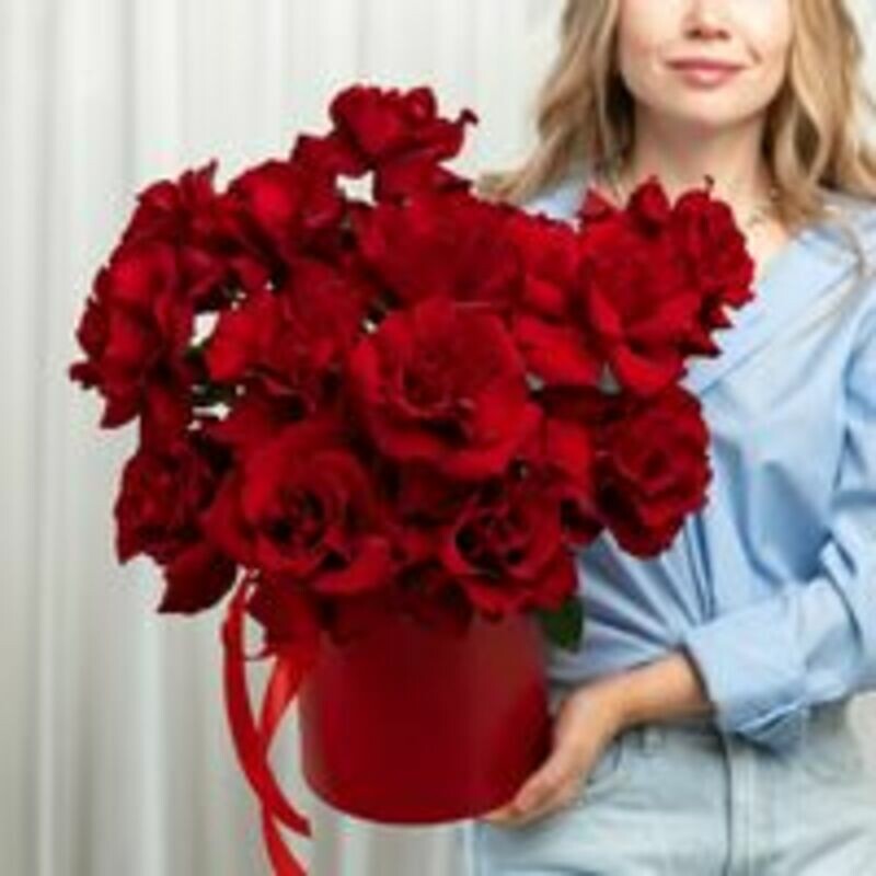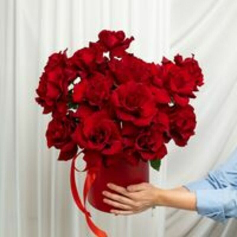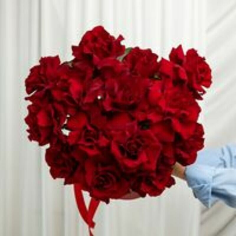 Kompozitciya iz 15 krasnih frantcuzskih roz v korobke