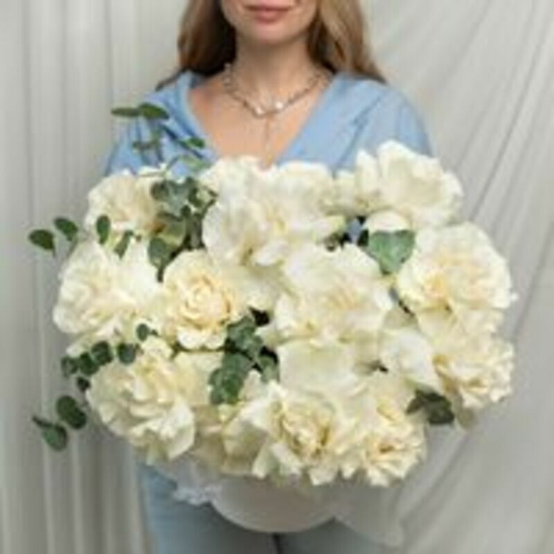 - Kompozitciya iz 15 belih frantcuzskih roz v korobke