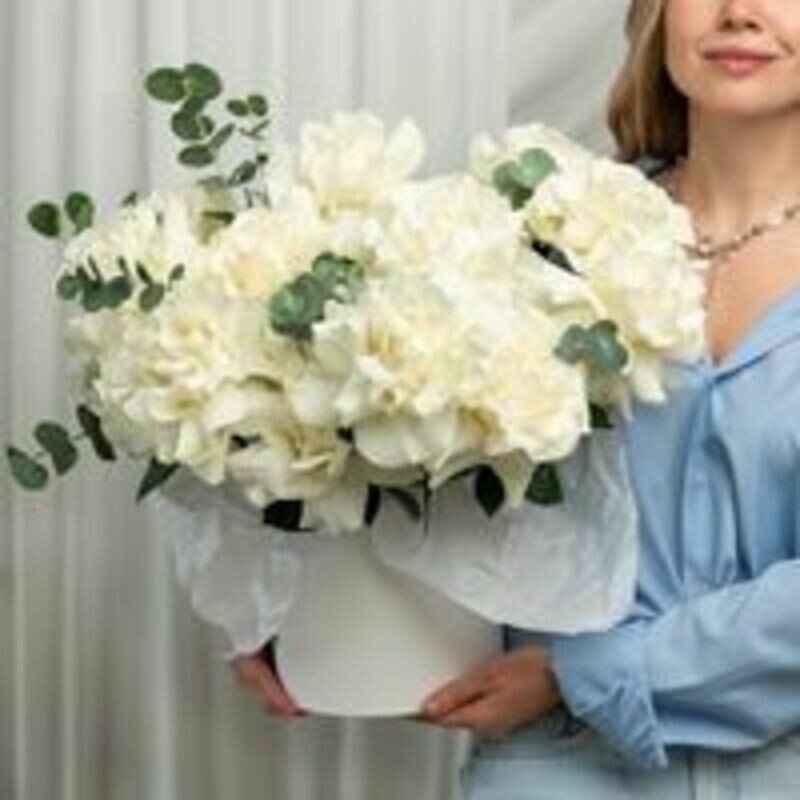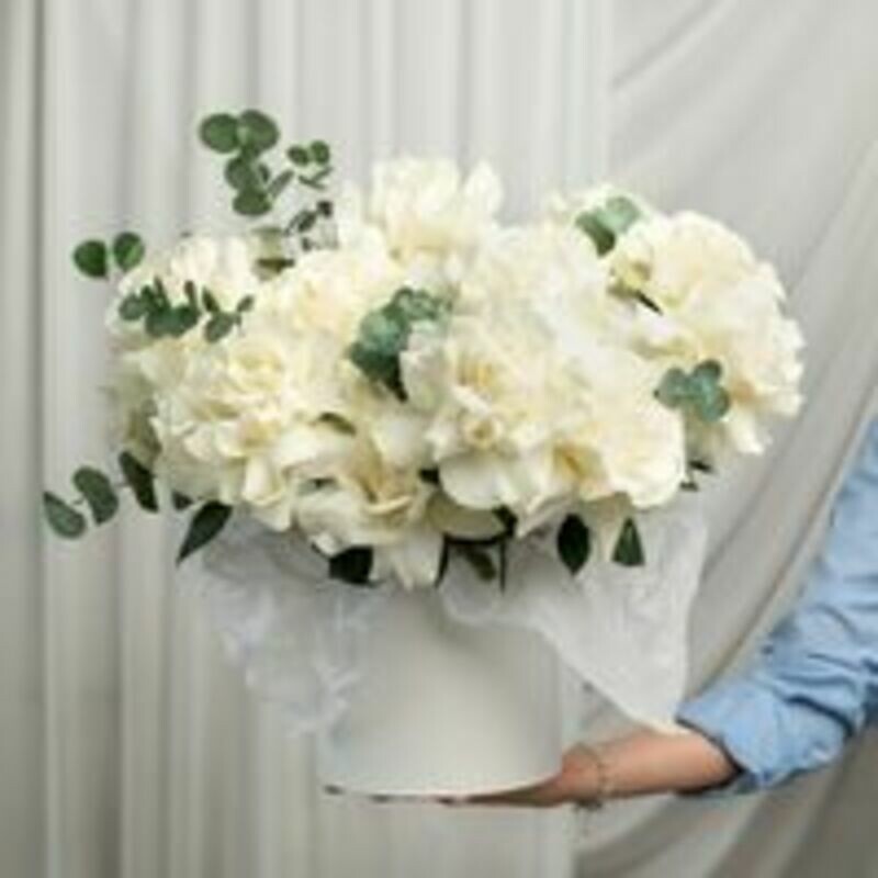 Kompozitciya iz 15 belih frantcuzskih roz v korobke
