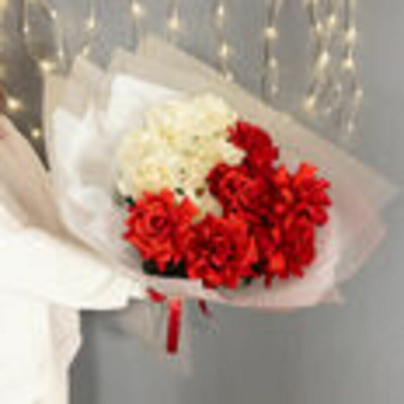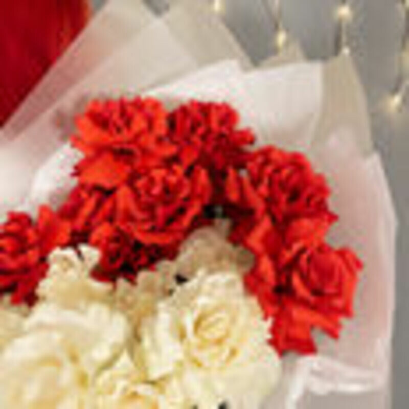 - Buket iz 15 krasno-belih frantcuzskih roz