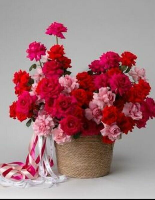 - 45 frantcuzskih roz v pletennom kashpo
