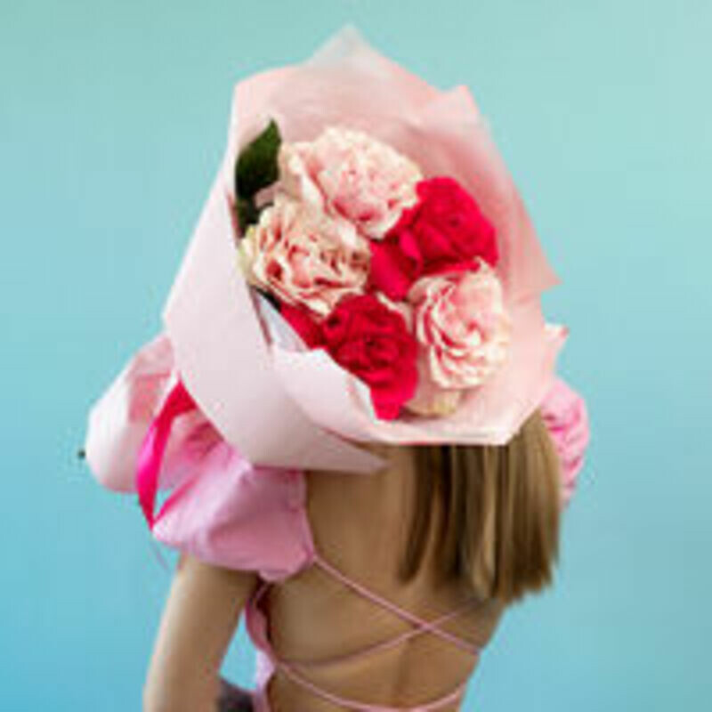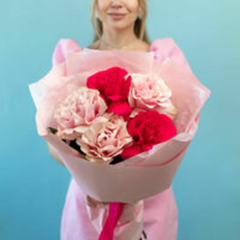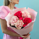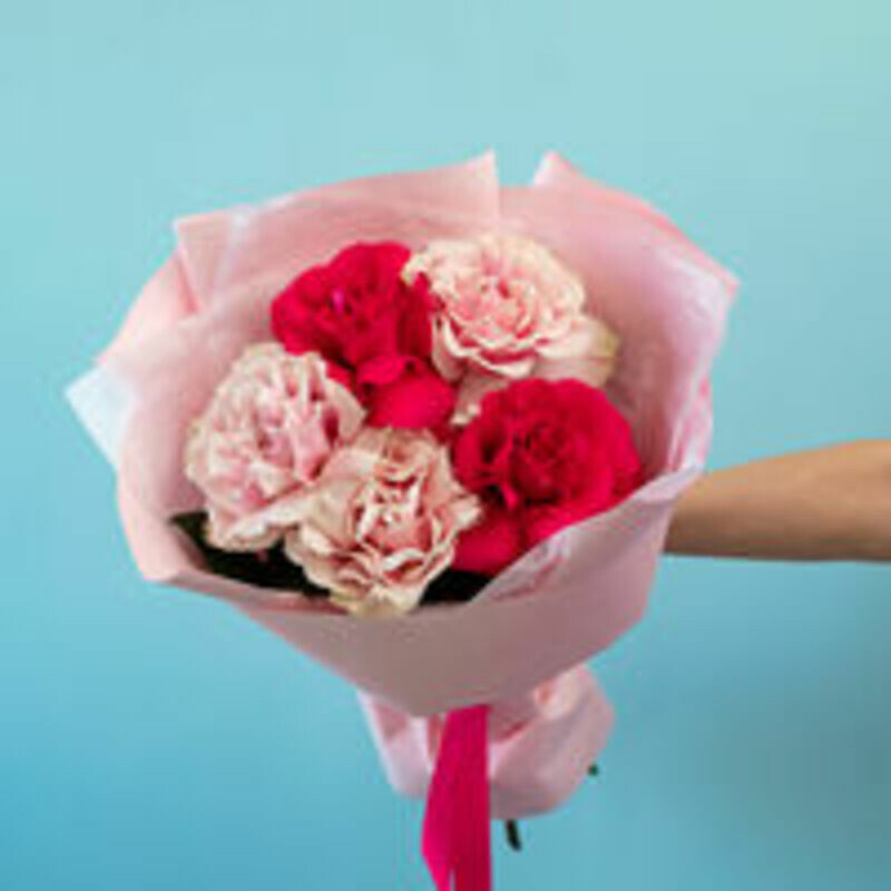 - Buket iz 5 frantcuzskih roz rozovij miks