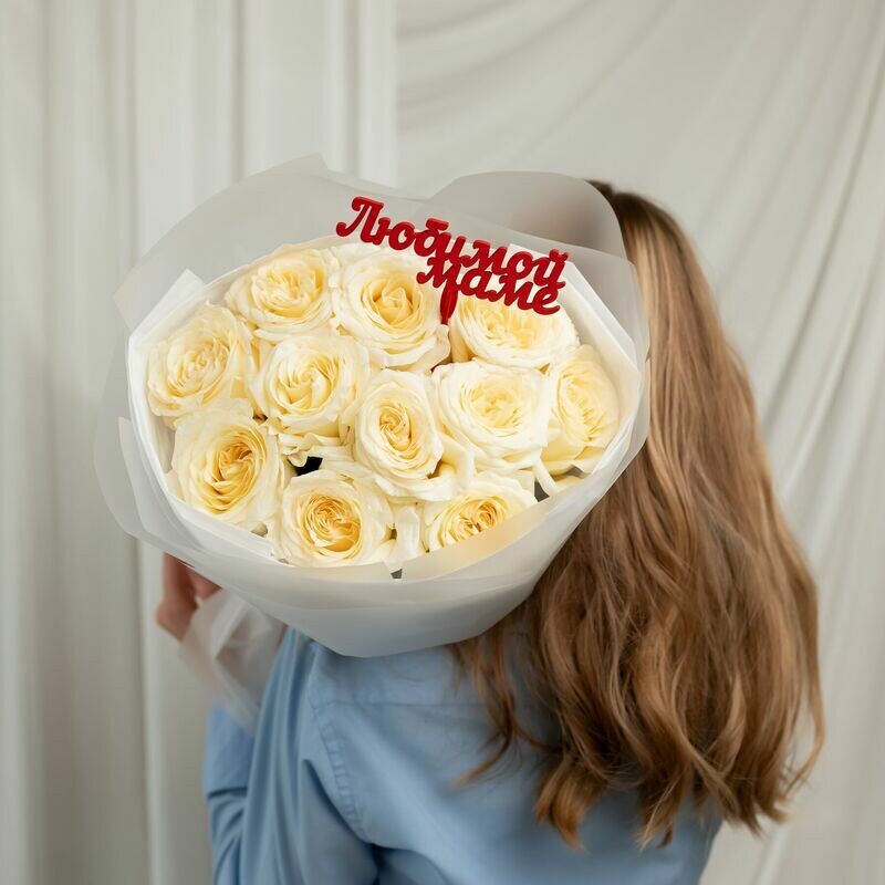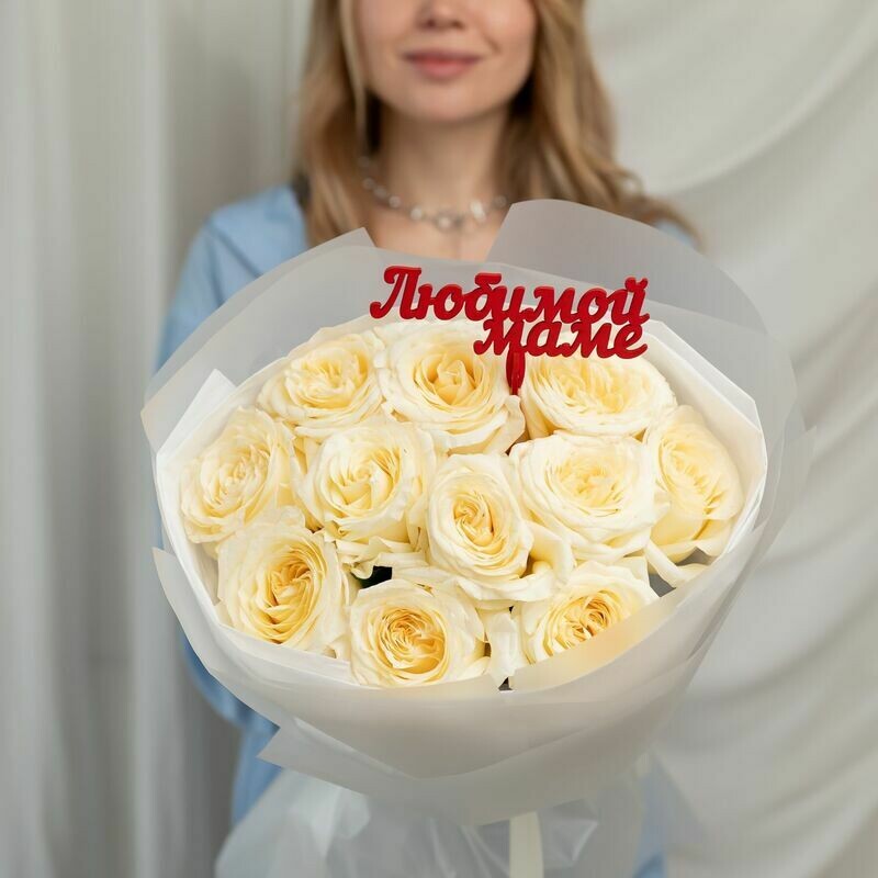 - 11 pionovidnih roz i topper Lyubimoj mame
