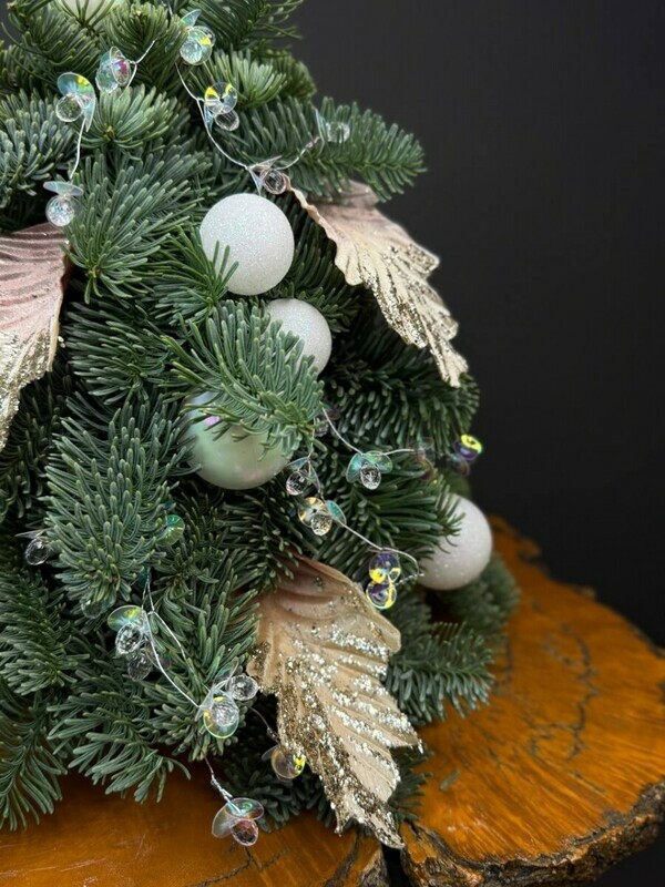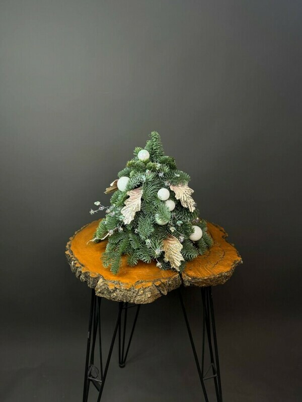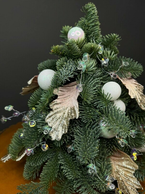 Novogodnyaya kompozitciya "Elochka iz nobilisa s ukrasheniyami" 35sm