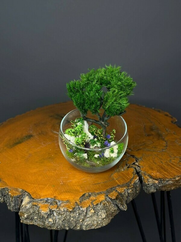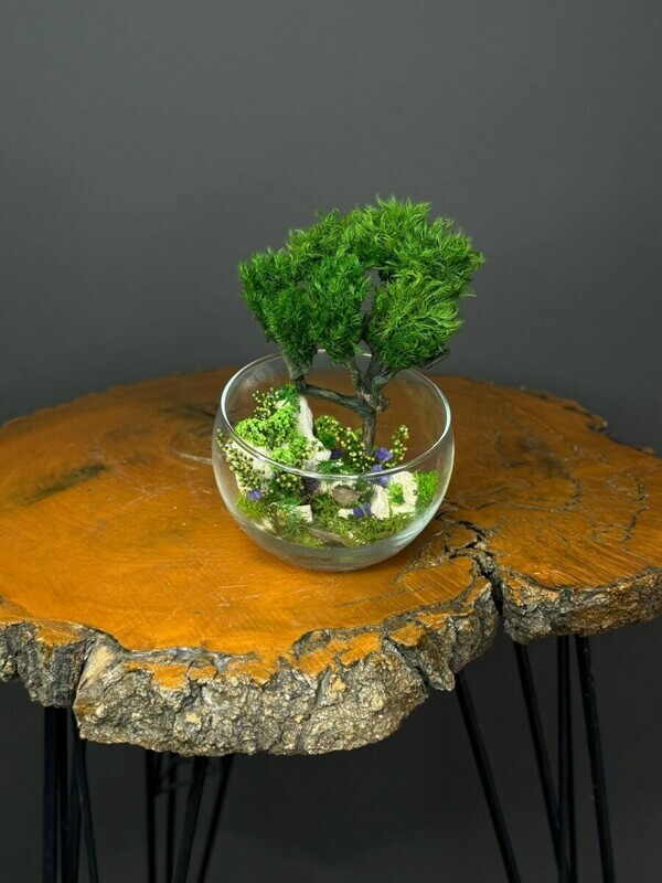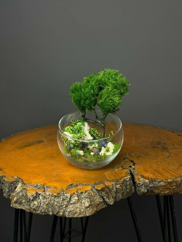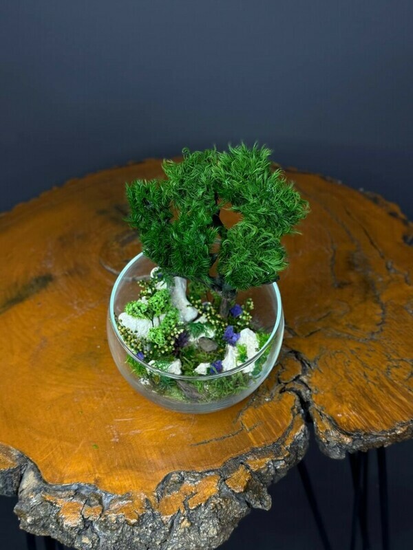 - Mini mossarium-florarium s stabilizirovannim mhom v vaze