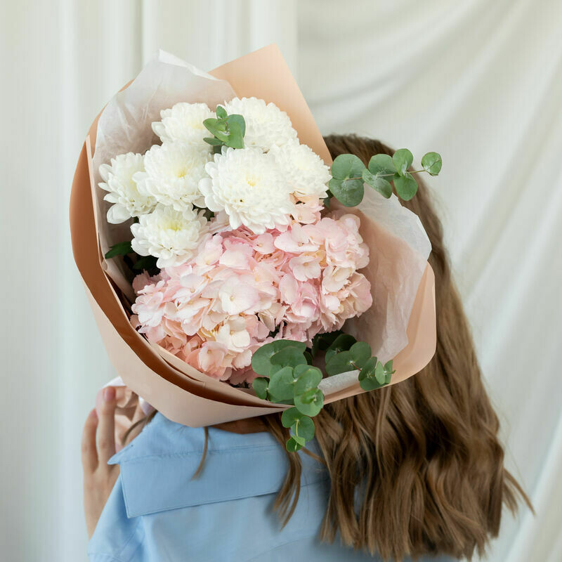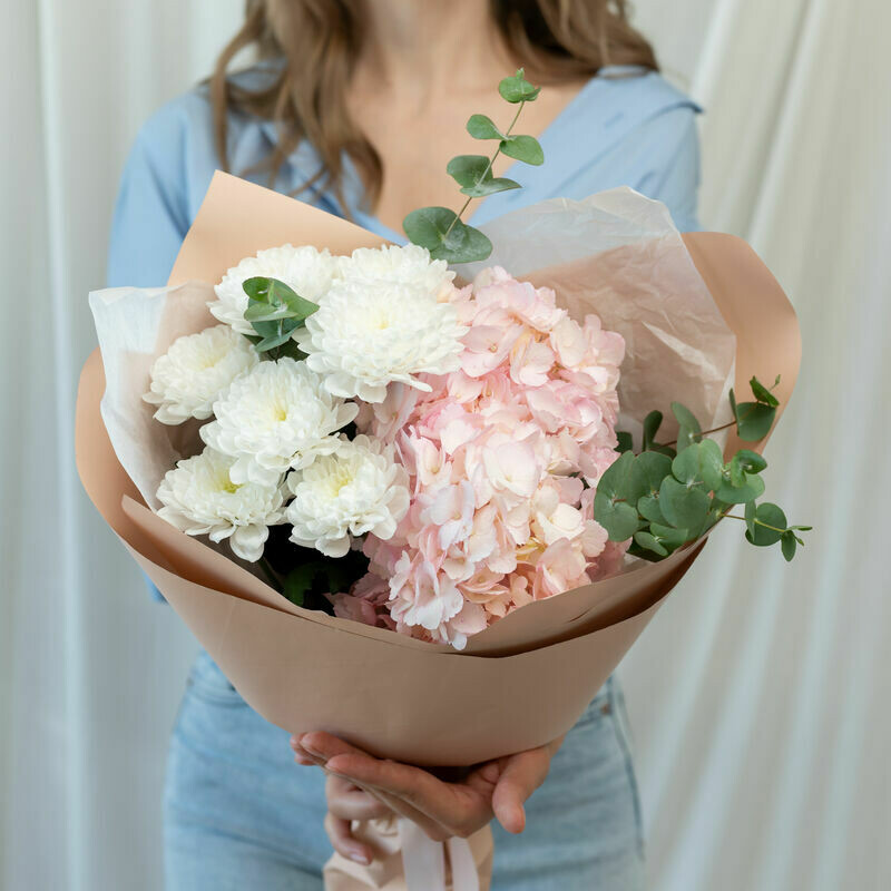 Sbornij buket s rozovoj gortenziej