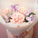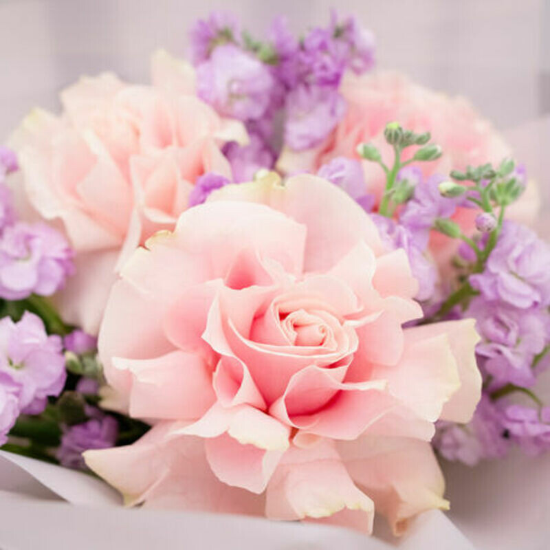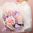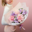 - Buket s sirenevoj mattioloj i frantcuzskoj rozoj
