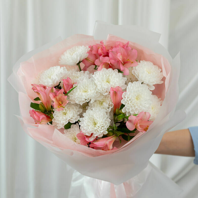 - Sbornij buket iz pushistoj hrizantemi i al_stromerii