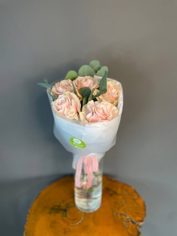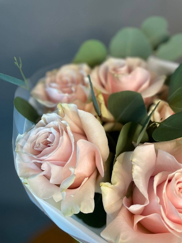 - Buket s frantcuzskimi rozami i evkaliptom
