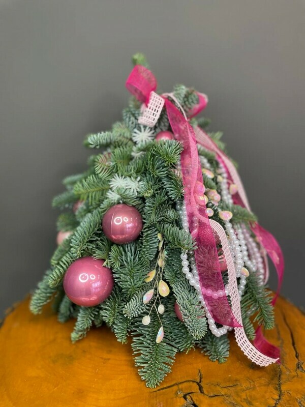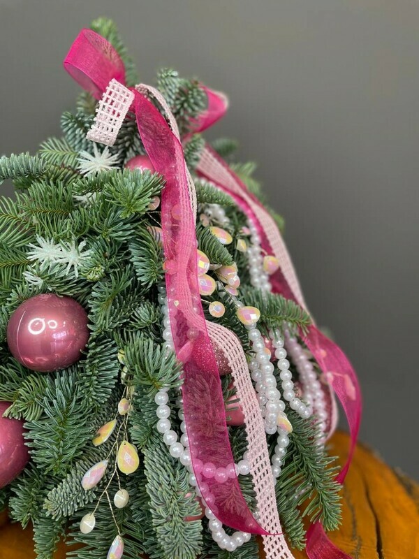- Novogodnyaya elochka iz nobilisa s lentami rozovaya