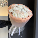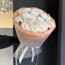 Nezhnij buket v pastel_nih tonah - ideal_noe sochetanie vozdushnih belih hrizantem i nezhno-persikovih diantusov. Upakovka v myagkuyu persikovuyu bumagu i poluprozrachnuyu matovuyu plenku, zavernutaya beloj atlasnoj lentoj, pridaet kompozitcii legkost_ i iziskannost_. Buket darit oshushenie chistoti, tepla i zaboti. Podojdet dlya pozdravlenij, romanticheskogo podarka ili prosto chtobi poradovat_ blizkogo cheloveka.