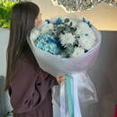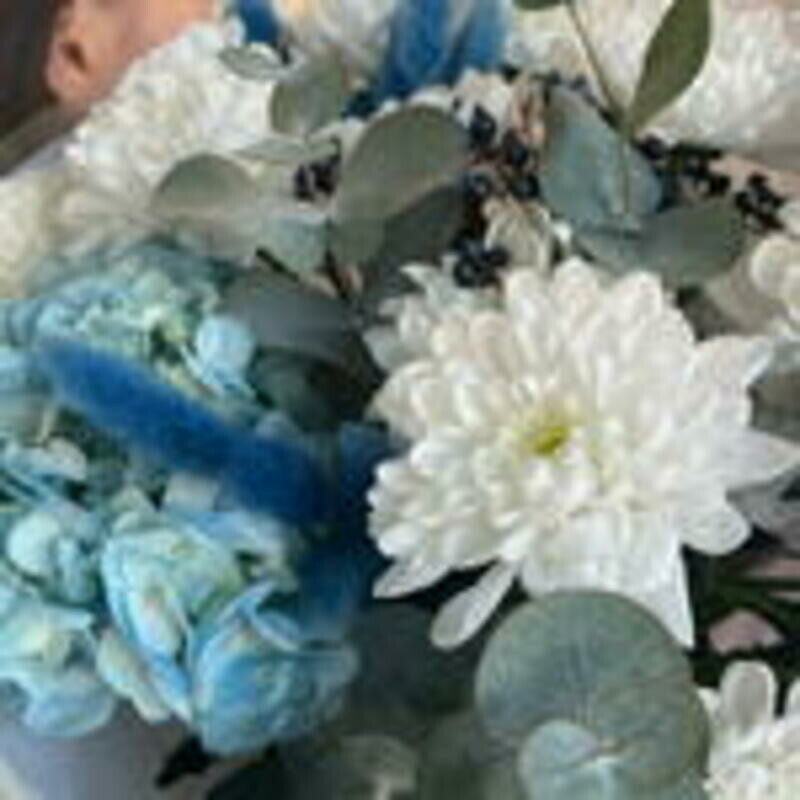 Buket s goluboj gortenziej i lagurusom — eto stil_naya i original_naya kompozitciya, kotoraya privlekaet vnimanie svoej neobichnoj tcvetovoj gammoj i teksturoj.