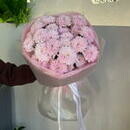 Mono buket iz rozovoj hrizantemi — eto yarkaya i stil_naya kompozitciya, kotoraya privlekaet vnimanie svoej prostotoj i elegantnost_yu