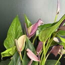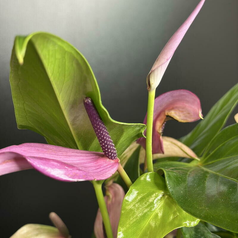 Etot fioletovij anturium — redkij i effektnij sort, kotorij stanet zhemchuzhinoj lyuboj kollektcii. Ego glyantcevie, slovno otlitie iz voska, pokrivala imeyut glubokij, nasishennij ottenok, kotorij menyaetsya v zavisimosti ot osvesheniya — ot nezhnogo lavandovogo do blagorodnogo fioletovo-purpurnogo.