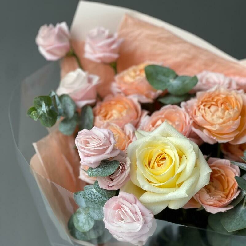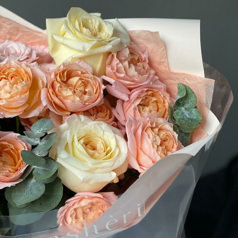 - SHikarnij avtorskij buket s kustovimi rozami