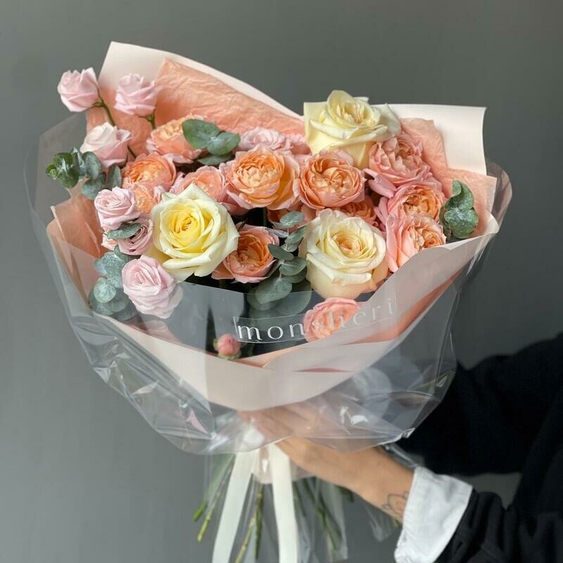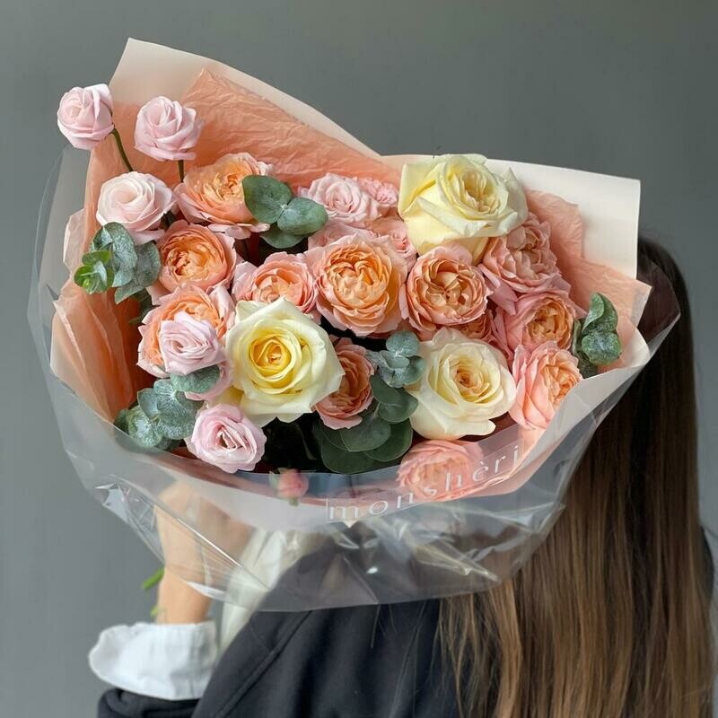SHikarnij avtorskij buket s kustovimi rozami