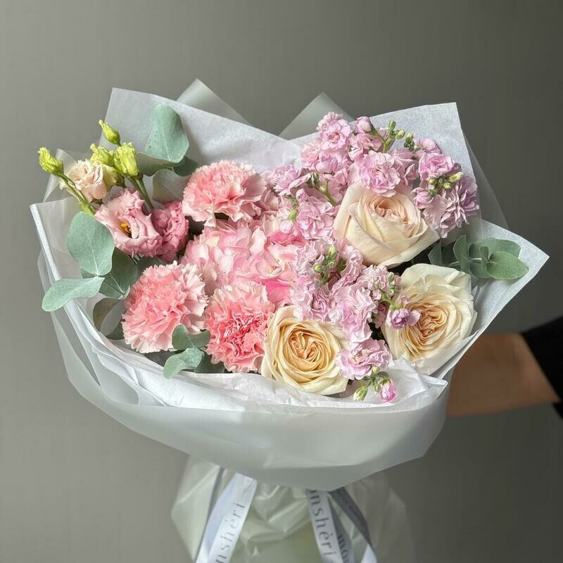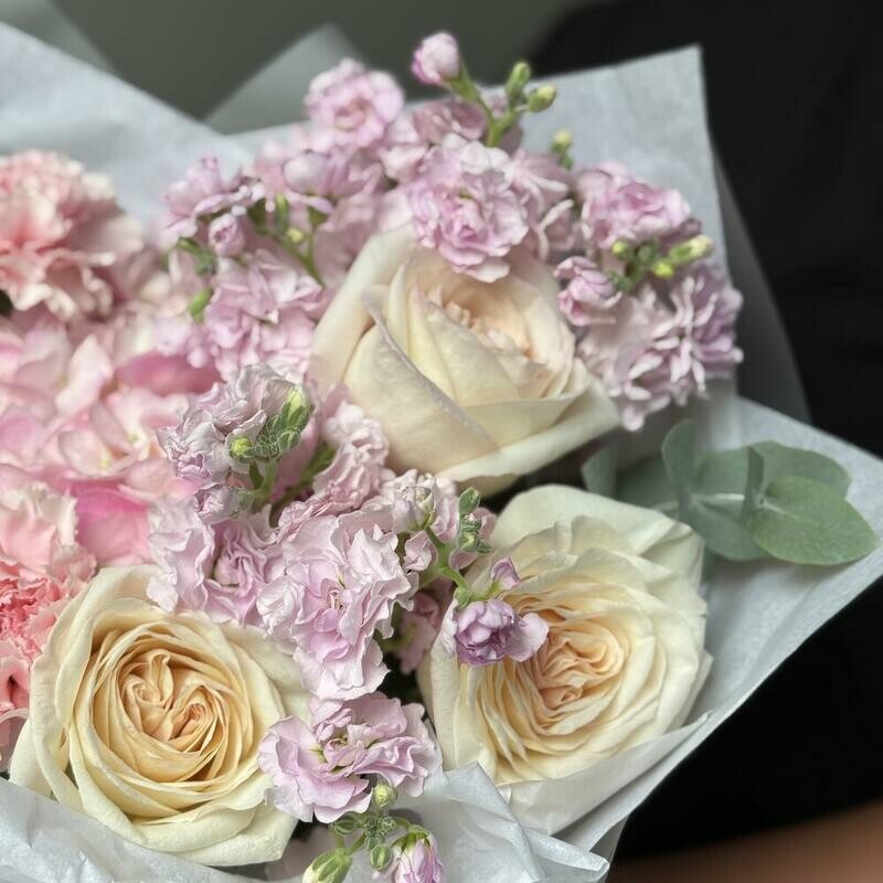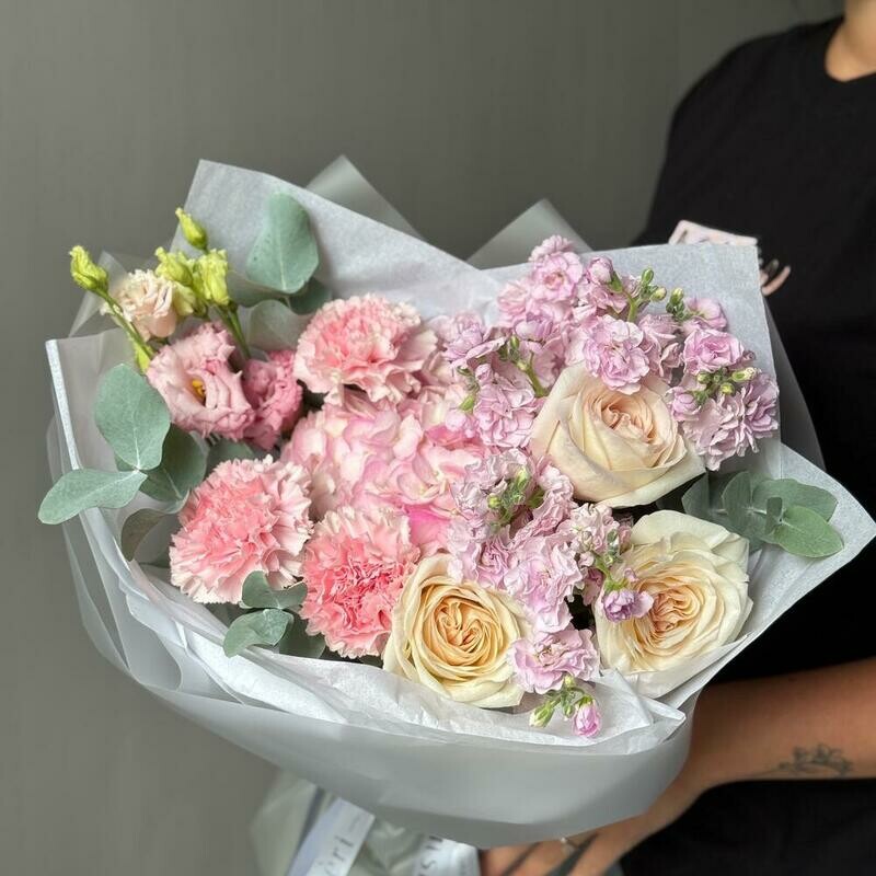 - Avtorskij buket s rozami i eustomoj