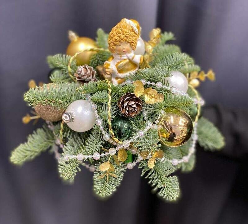 - Novogodnyaya kompozitciya s nobilisom i yarkimi sharami