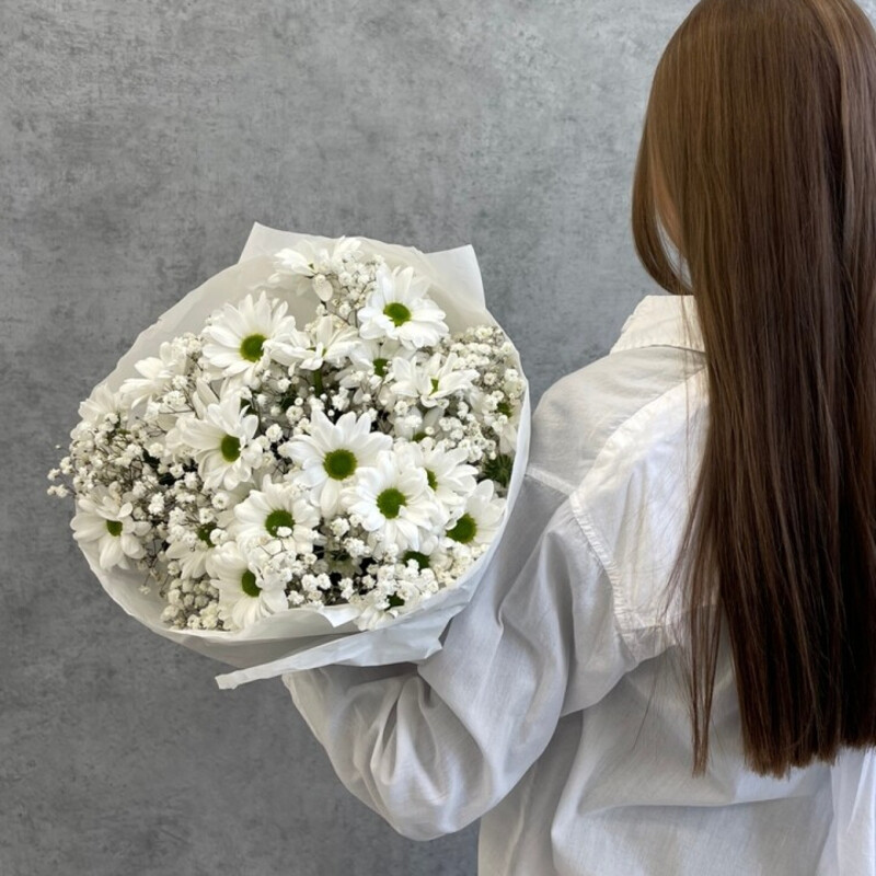 - Belij nezhnij buket s romashkoj i gipsofiloj