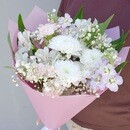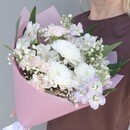 - Milij buket kompliment s hrizantemoj, al_stromeriej i mattiolrj