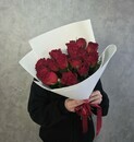 Buket sostoit iz 15 krasnih roz 50 sm, chto delaet ego yarkim i zapominayushimsya. Rozi iz Kenii slavyatsya svoim kachestvom i krasotoj, a ih nasishennij krasnij tcvet pridast podarku osobuyu torzhestvennost_.