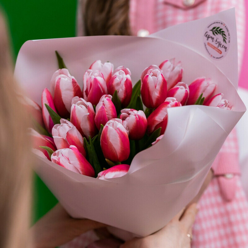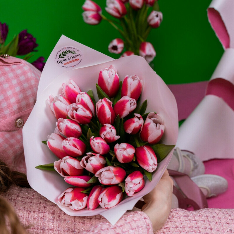 25 pink and white tulips