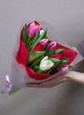 Buket iz 9 tyul_panov (miks) v matovoj plenke s tish_yu i atlasnoj lentoj Ideal_nij podarok na lyuboj vesennij prazdnik i osobenno na 8 marta.