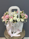 - Nezhnaya kompozitciya v sumochke s kustovimi pionovidnimi rozami