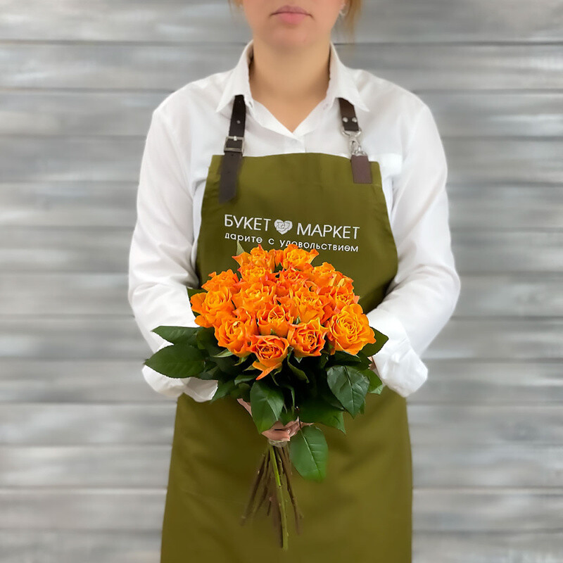 Buket iz 11 oranzhevih roz s lentoj Keniya 40 sm.