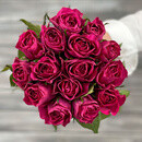 Buket iz 11 malinovih roz s lentoj Keniya 40 sm.