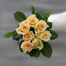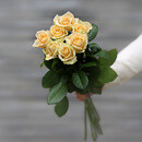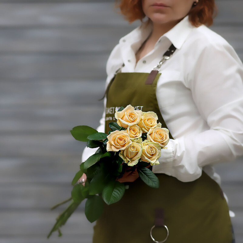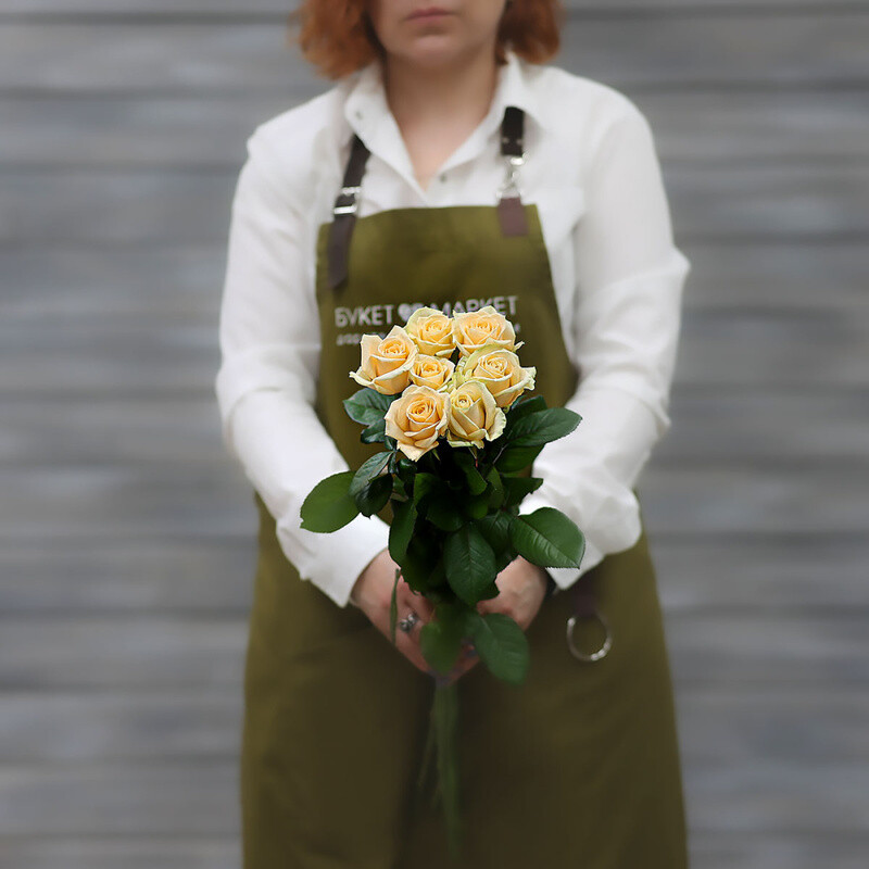 - Buket iz 7 kremovih roz (Rossiya) s lentoj 60 sm