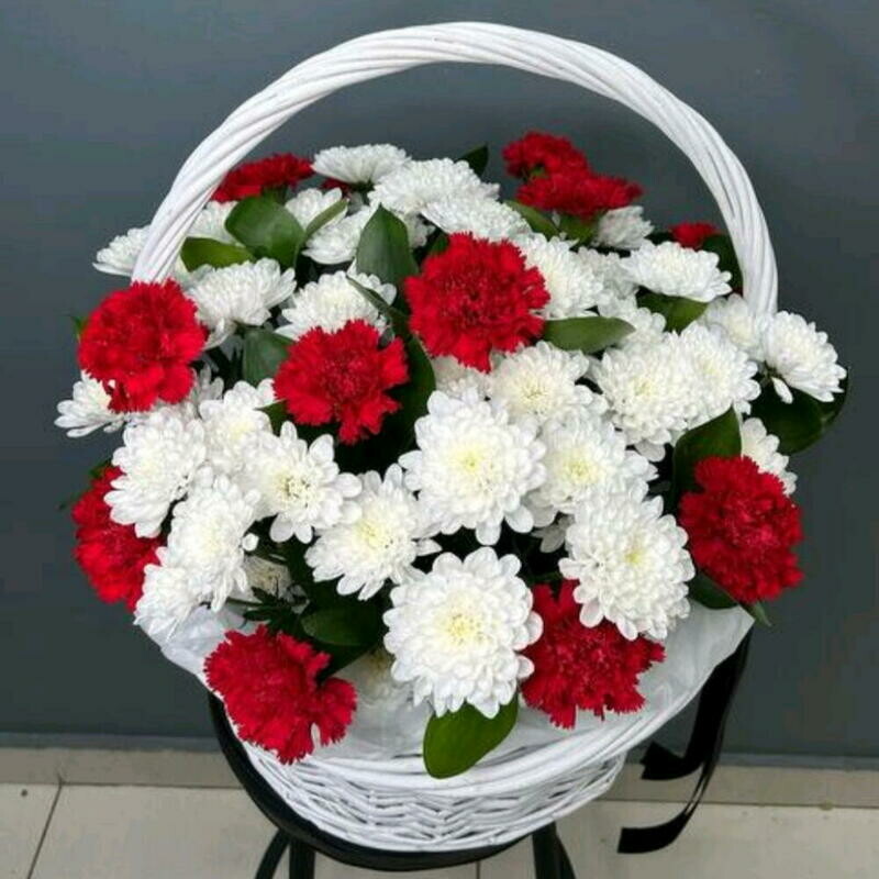Korzina na pohoroni Traurnij buket TCveti dlya vozlozheniya Gvozdika krasnaya