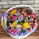 Avtorskaya premial_naya korzina s klubnikoj v shokolade i tcvetami