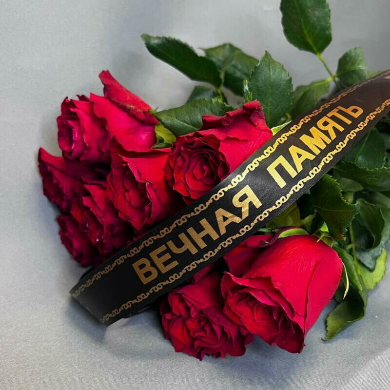 Traurnij buket iz 10 krasnih roz  Rozi na pohoroni Pohoronnij buket, premium