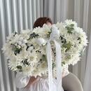 Композиция из белых кустовых хризантем , ароматного эвкалипта и белого хлопка