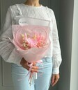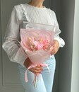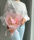 Этот букет — застывшая в идеальный миг история любви. Стабилизированные розовые розы, символ восхищения, благодарности и нежных чувств, сохраняют свою бархатистую красоту на долгие годы. Их мягкий румянец дополняется воздушным облаком гипсофилы и трогательными пушистыми «хвостиками» лагуруса, создающими ощущение лёгкости и чистоты. А в сердце этой сказки — декоративное розовое сердце. Это не просто акцент, а главное послание: «Ты — центр моей вселенной». Композиция не знает слова «увядание». Это вечное напоминание о самом трепетном и светлом чувстве. Идеальный подарок: на День влюблённых, годовщину знакомства, свадьбу, в день рождения или просто чтобы сказать: «Я ценю каждое мгновение с тобой».