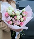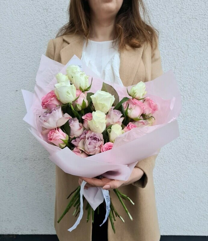 Гармония нежности в трех измерениях! Этот букет, объединивший чистоту белых, сладость розовых и загадочность сиреневых роз, — это настоящее воплощение изящной любви, восхищения и светлой радости. Он рассказывает историю самых искренних и трогательных чувств без единого слова. Идеальный способ выразить всю глубину привязанности, создать атмосферу утонченного праздника или сделать комплимент самому дорогому человеку. Дарите волшебство в каждой нотке!