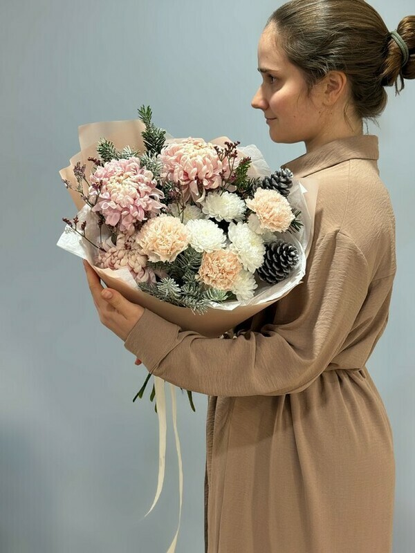 Волшебство новогоднего настроения кроется в деталях, в маленьких радостях, способных преобразить обыденность в предвкушение чуда. И что может быть более красноречивым символом приближающихся праздников, чем букет, собранный с особой любовью и вниманием к деталям?