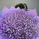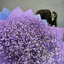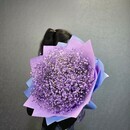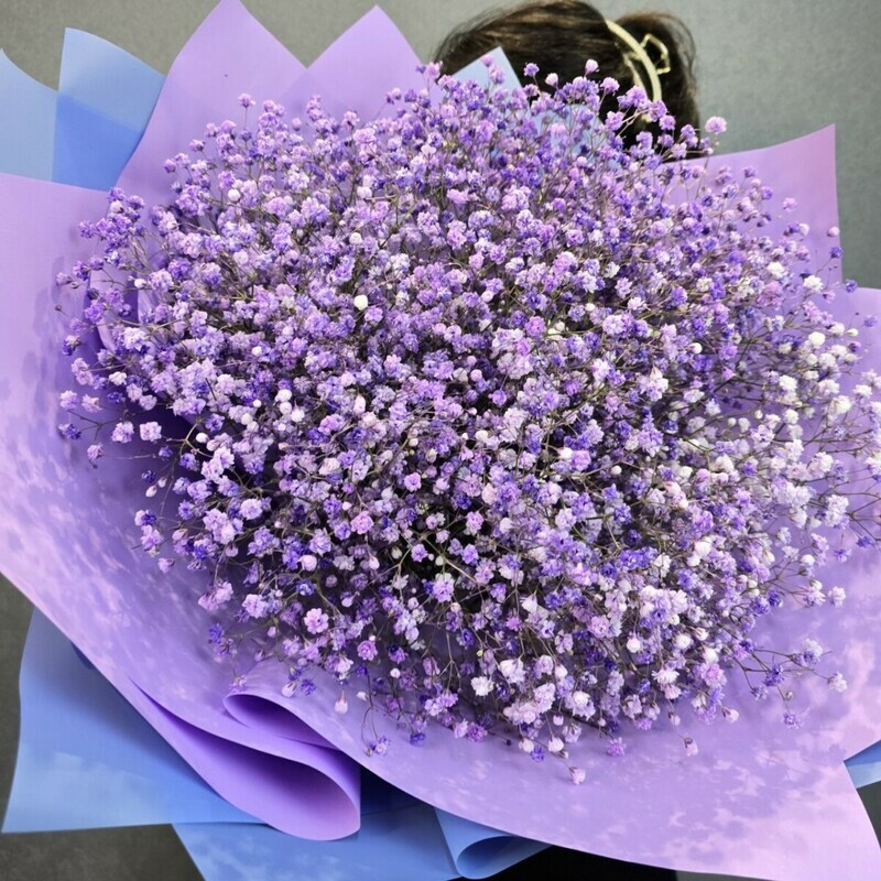 Этот букет — словно облако сиреневых грёз, спустившееся с небес! Нежная гипсофила, окрашенная в мягкие оттенки фиолетового и белого, создаёт ощущение лёгкости и воздушности. Упаковка в сиренево-голубых тонах подчёркивает его романтичность и утончённость. Такой букет подарит ощущение волшебства и наполнит день нежностью.